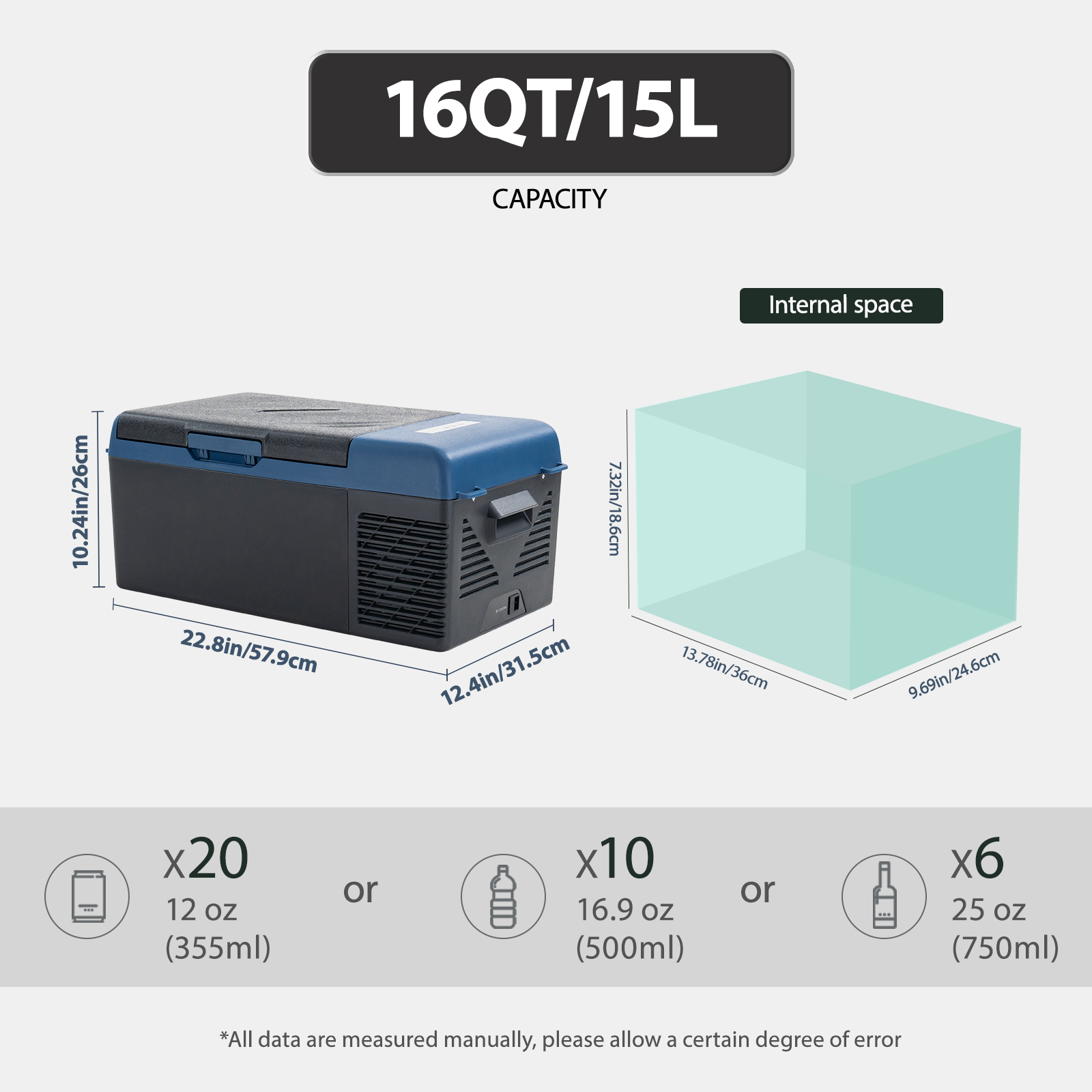 This 16QT (15L) portable 12V cooler serves as both fridge and freezer, powered by an advanced compressor that quickly cools from 68°F to -4°F, with Fast Cooling and Energy Saving modes available. It adopts a fluorine‑free, efficient insulation design and features a sturdy, vibration‑resistant build that ensures stable cooling even on slopes, ideal for trucks, campers, SUVs and outdoor activities.