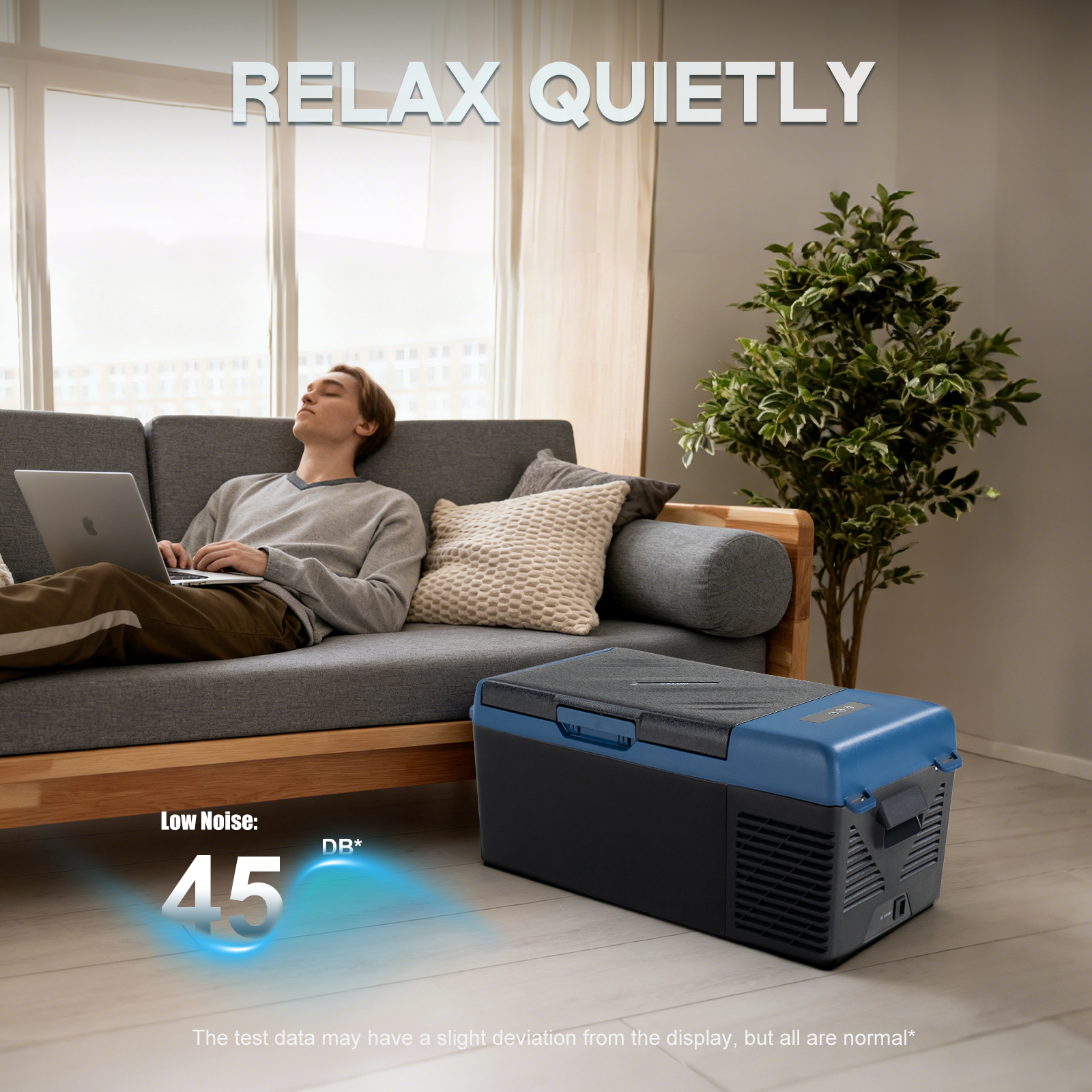 When you use the refrigerator in your car and plug it into a 12V socket, the noise is almost imperceptible!
