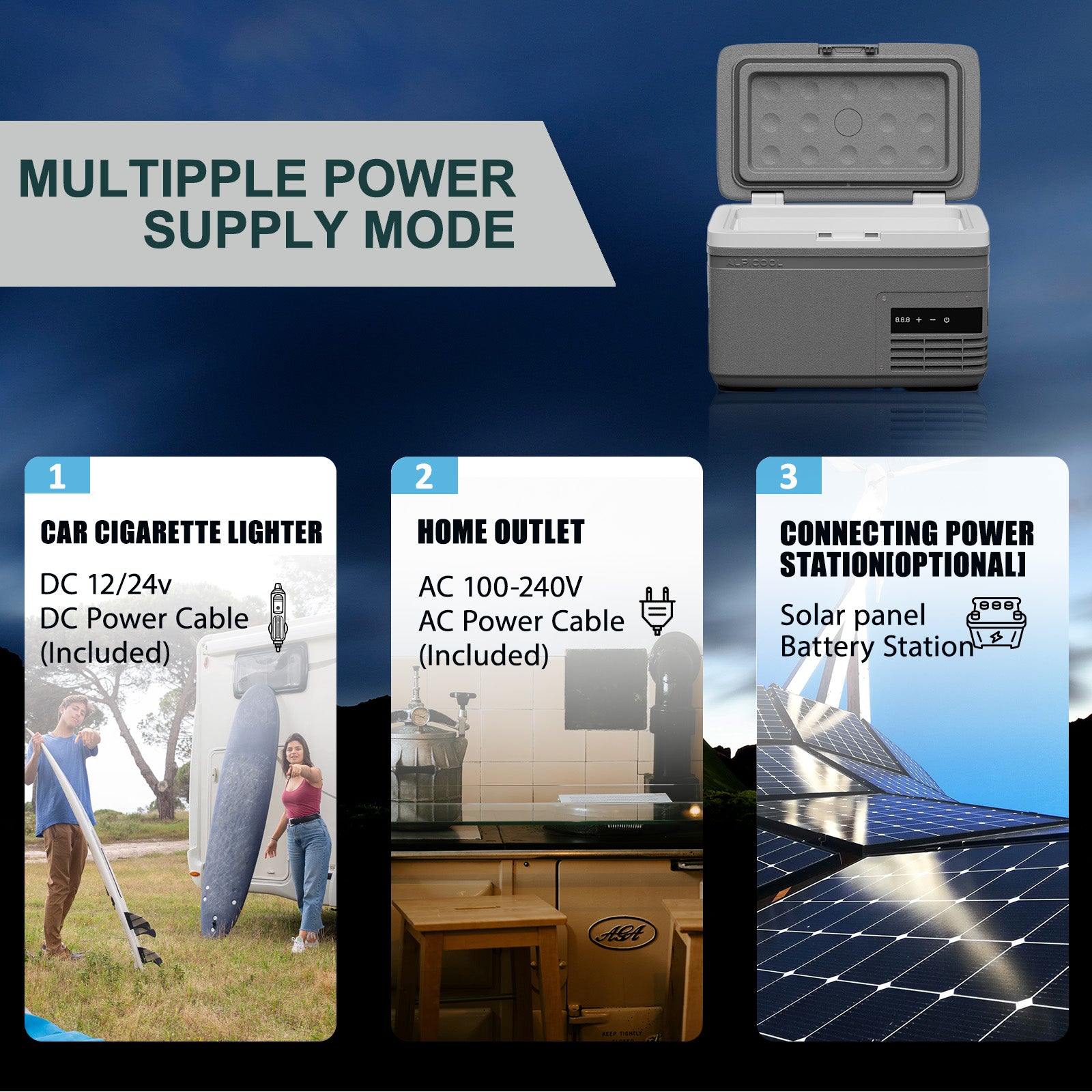 Yes, you can get AC/DC and 12V power cables online. Make sure the adapter fits Alpicool.