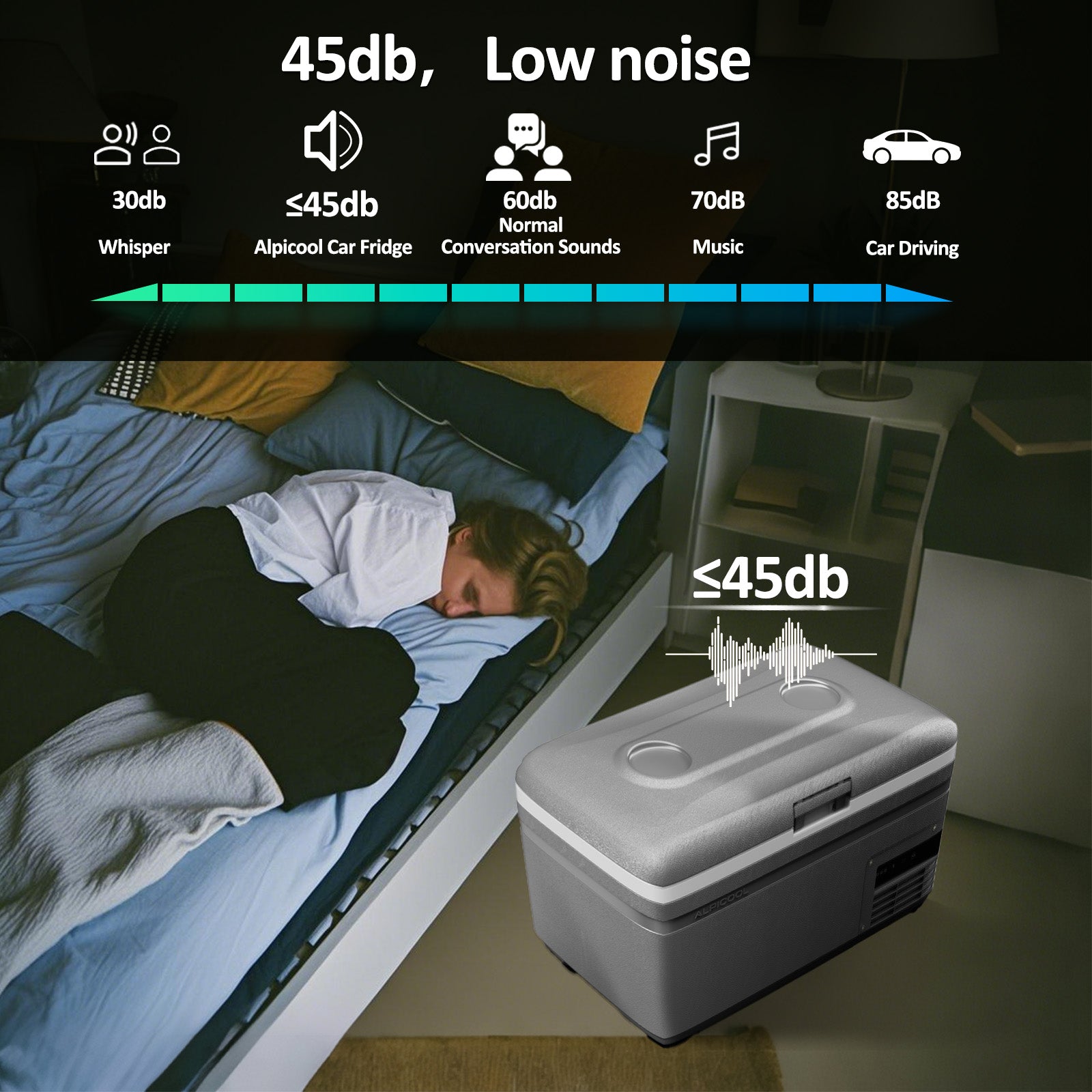 When you use the refrigerator in your car and plug it into a 12V socket, the noise is almost imperceptible!
